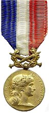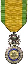 Instituted by decree of 22nd January 1852. Awarded to non-commissioned officers and other ranks of the Army and Navy including the Merchant Navy, for bravery and courage in action, or who have received one or more wounds. Under the statutes it can be awarded to Generals commanding armies and Admirals commanding fleets. Foreign nationals serving France or the Allied forces can also be awarded the Médaille Militaire. This decoration may be awarded posthumously.