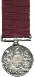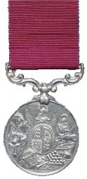 On this version the House of Hanover badge was dropped (although new dies were not introduced until 1839) and replaced by Queen Victoria's Royal coat of arms. Smaller lettering replaced the large lettering on the reverse. The legend remained the same: FOR LONG SERVICE AND GOOD CONDUCT. In 1855 a swivelling scroll suspension was introduced, followed in 1874 by small lettering replacing the original large lettering on the reverse side.