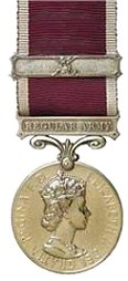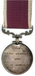 The Long Service & Good Conduct (LSGC) medal was instituted in 1830. The medal is made from silver and is 36 millimetres in diameter. Originally the medal's ribbon was plain crimson 1” wide. However in 1917 due to its similarity to the Victoria Cross it was replaced to a 1.25” crimson ribbon with white stripe at both edges. The medal was originally awarded to infantry NCOs and men who had completed 21 years' good conduct, or cavalry NCOs and men who had completed 24 years' good conduct. In 1870, this qualifying period was reduced to 18 years for both the infantry and cavalry. During the Second World War, officers could also be awarded this medal if they had completed at least 12 of the 18 years in the ranks. In 1940 clasps for further periods of service were introduced. In 1977 this qualification period was reduced further to 15 years. The vast majority of LS&GC medals are issued named to the recipient, with the name on the rim around the medal either engraved and impressed. A Long Service medal was also issued to members of the Volunteer Force. This was a different medal and had a different coloured (green) ribbon. The metal and the size of the medal appear to be the only characteristics that remained unchanged over the years. Originally dark crimson, this was amended to dark crimson with white edges for awards made from 1916 onwards. |