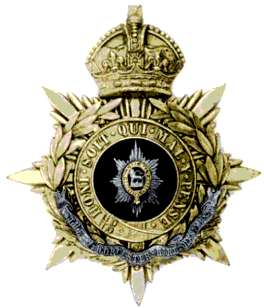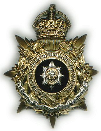 Worcestershire Regiment Helmet Plate (1891-1901) This is an soldiers' helmet plate introduced in 1891. Similar to the officers' plate but the Garter is replace with a circular ring containing the word "WORCESTER" and "FIRM". The whole plate is in gilding metal. |