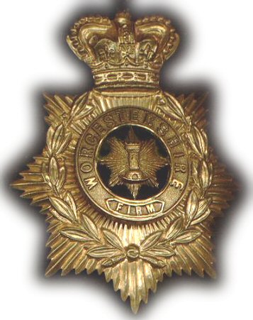 Worcestershire Regiment Helmet Plate (1883-1890) This is an soldiers' helmet plate introduced in 1883. This was also used by the Volunteer Battalion the main difference in that case is that the word "FIRM" is replaced with the words "2nd VOLs BATT". |
