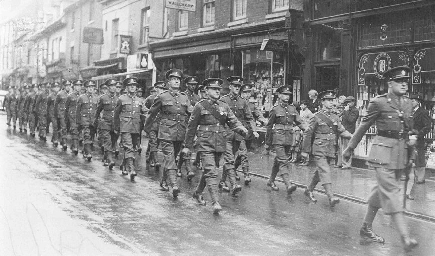 Men of "C" Company, 8th Battalion Worcestershire Regiment marching through Bromsgrove in 1938/1939