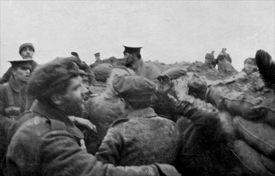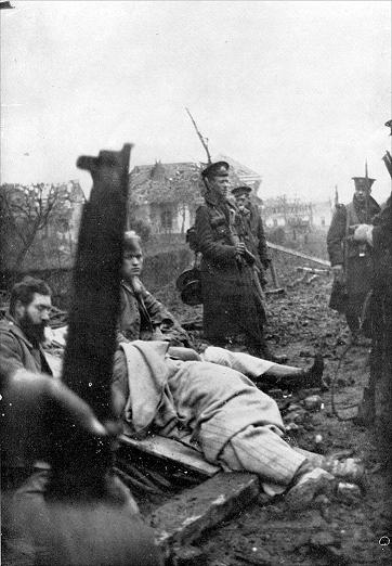 In front of them the open ground around the village was dotted with working parties, with wounded men walking back and with the usual debris of battle; while in every direction German shells were bursting.