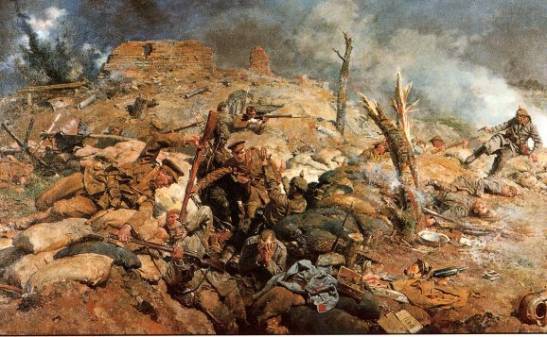 Oil painting of a Scene from the Battle of Neuve Chapelle by Matania |