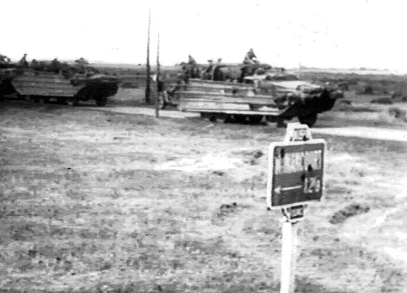 Battalion travelling in D.U.K.W.’s heading for Vernon |