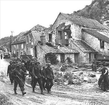 Worcesters ‘C’ Coy taking German prisoners at Vernonnet |