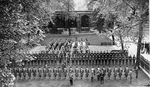 Sir Claud Jacob, who assumed the Colonelcy on 1st February 1927, served his first two years of service in the old 29th Regiment before transferring to the Indian Army. Like many officers of the Indian Service, he was conscious of a great debt to the battalion of the British Army in which he had served his apprenticeship, and he welcomed the opportunity to repay that debt in identifying himself with every interest of the Regiment and devoting much time and thought to his duties as their Colonel. He was born in 1863 of a long line of soldiers whose name is perpetuated in a fine cavalry regiment, Jacob’s Horse. After education at Sherborne School and Sandhurst he transferred from the British Service to the Indian Staff Corps in 1884. He saw service in the Zhob Valley Expedition, 1890, and again on the North-West Frontier in 1901. It was as Colonel on the General Staff that he arrived in France in 1914 with the Indian Expeditionary Force and in 1915 received command of the Dehra Dun Brigade. He continued to go from strength to strength, commanding the 21st Division and in May 1916, assuming command of the 2nd Corps with the rank of Lieutenant-General. As a Corps Commander he fought through the Somme battle in 1916, Passchendaele in 1917 and the hard fighting in 1918. After command of a Corps on the Rhine in 1919 he returned to India in 1920 as the late Lord Rawlinson’s Chief of Staff, in which capacity the heavy burden of seeing through Lord Rawlinson’s reorganization of the Indian Army fell on his shoulders. From 1924 to 1925 he commanded the Northern Command in India, acting in 1925 for a short period as Commander-in-Chief. During this period he was made A.D.C. General to His Majesty The King and was promoted to Field-Marshal in 1926. Returning to England, he held the extremely important post of Military Secretary at the India Office from 1926 to 1930, and on 24th May 1938 he was appointed Constable of the Tower of London (photo below shows the ceremony, at the tower, with the 1st Battation Worcestershires which at the time was commanded by Lieut.-Colonel S. A. Gabb). This event happy occasion, coincided with the 1st Battalion’s responsibility for duty at the Tower of London. |
