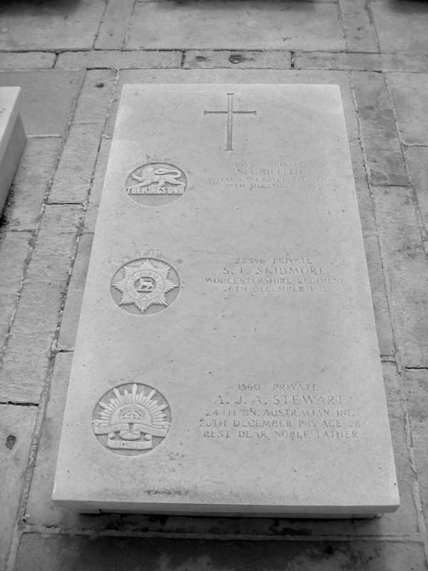 Gravestone at the Pieta Cemetery, Malta, where he died of his wounds.