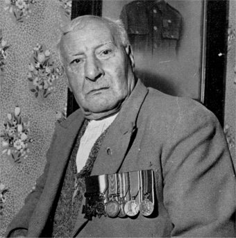 At night he managed to make his way back to the trenches, carrying the wounded officer. Lieutenant Jennings, who was very tall, had his arms round Turrall's neck, and the sentry at first was on the point of shooting him for not putting up his hands. The officer died within two hours, but not before he had time to dictate an account of Turrall's action, which merited and received the Victoria Cross. | |